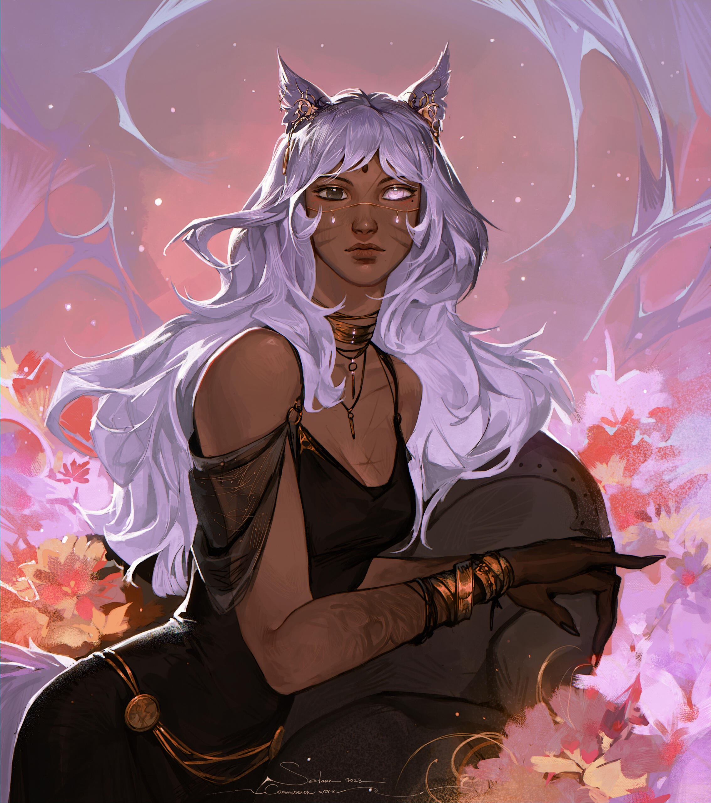 A lover of another life, friend, partner, or wife, Akisashi would adore them all. They have waited for millennia to meet them and to love them with their entire being. Her partner gives meaning to her life once more and is making her learn to live again, which Aki is eternally grateful toward them for. She knows that her partner is not the same as before, but she still sees that part of them in Vidhi, and wants to adore her new partner just as much. Since their first meeting, Aki only wishes to devote themselves to her lover no matter the cost, and to be certain to see them safe and happy.