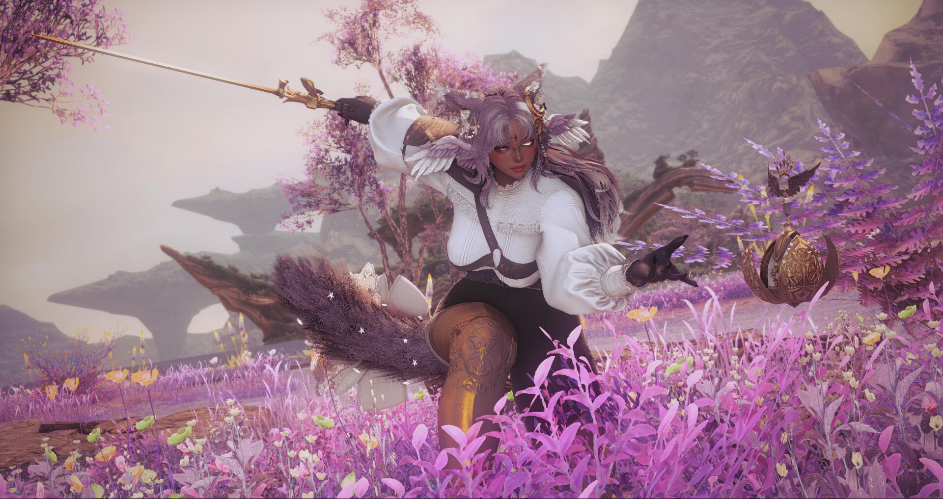Hopeful Dervish (Rare) — There are those all around the star, from Shaaloani to Yanxia, who occasionally mention a lavender-haired miqo'te adventurer whose weaponskills and magic helped them out of a tight spot, especially some survivors of the Final Days. Their memories of such a woman match Vidhi perfectly.